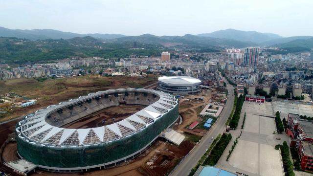 富源體育活動中心項目位于曲靖市富源縣城北,包括體育館和體育場,工程總造價3.6億元,一期總建筑面積為478682平方米,其中體育場建筑面積為29854.73平方米,體育館建筑面積15770.68平方米,建筑高度36米,框架結構。建成后將成為富源縣標志性建筑,體育館可舉行籃球比賽、訓練或舉辦中型演唱會;體育場可舉辦大型體育賽事或演唱會等。從項目功能需要出發,結合國際先進電聲技術設計的理念,提出本設計方案,以客觀而完善的設計全面滿足使用功能需求。